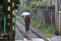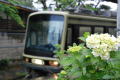 雨のGW最終日 由比ヶ浜駅にアジサイが・・・